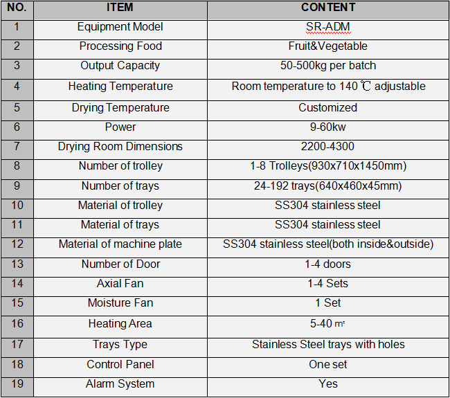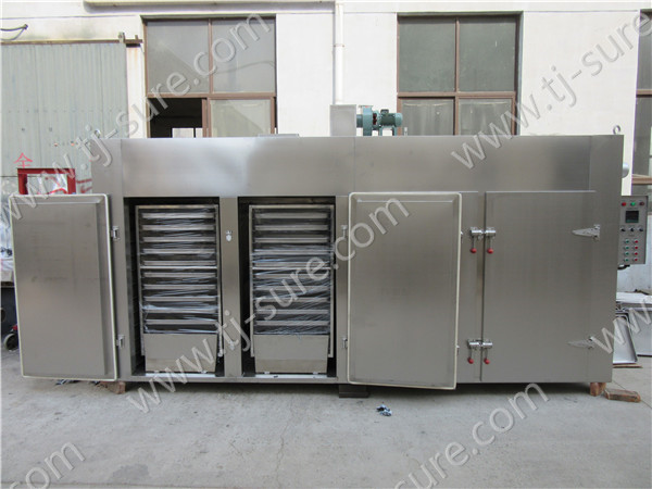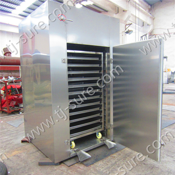 Electric heating type food dryer adopts noise elimination and thermal stable axial flow fan and automatic temperature control system.The hot air is circulation inside, high heating efficiency and good energy saving. The machine is made of food grade stainless steel, complying hygiene requirement with long working life. It is easy installation and maintenance. This equipment is wide application of food drying,such as fruit, vegetables, medicinal herbs and seafood,etc.It is an essential equipment for food processing and drying.