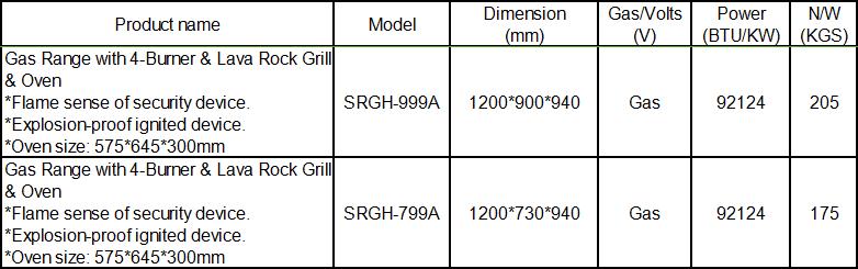 Gas Range with 4-Burner & Lava Rock Grill & Oven