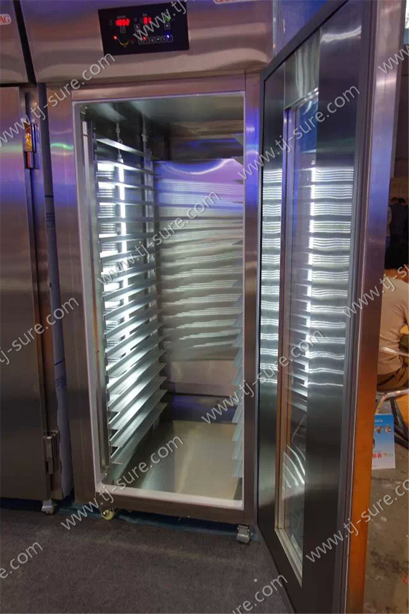 The fermentation case automatically adjust by a tubular electric heating element, to heat the water in case, make a lot of water vapour, the humidity in the case can reach 60-90%, the temperature can be controled in 35°C-40°C, form an ideal environment for fermentation. Heating sheets are installed inside the machine.Inner water would be turned to as the state of fog.It would be the ideal fermenting environment. Our fermenting machine is kind of excellence equipement for cake,bread.baking.